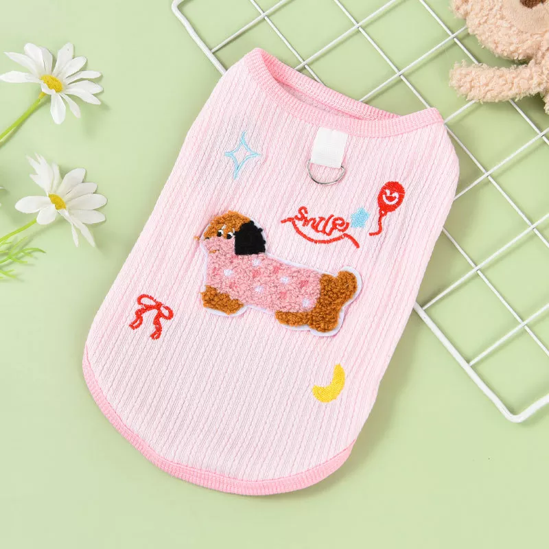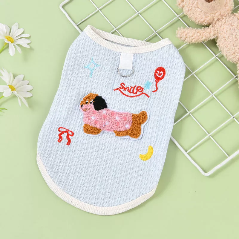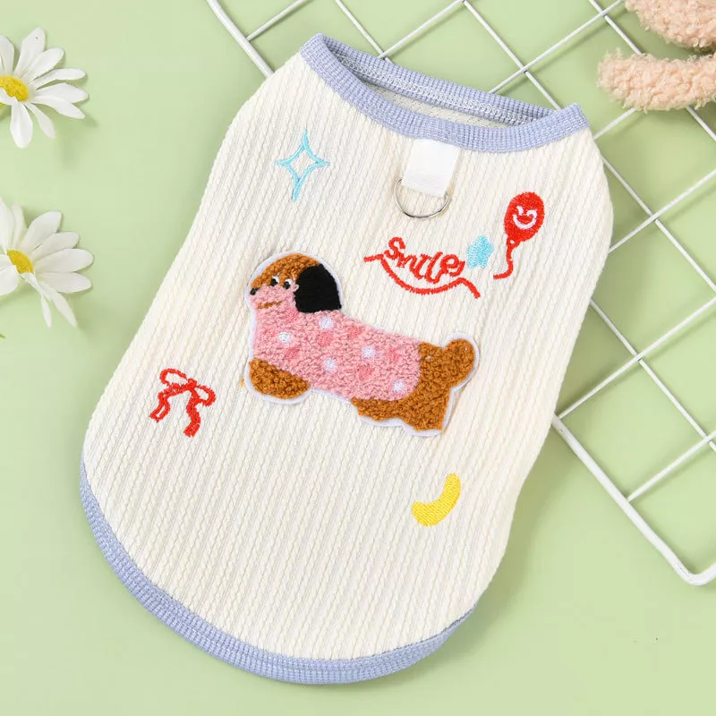 Spring & Summer Embroidered Dog Vest Hoodie for Small Dogs – Lightweight & Stylish