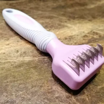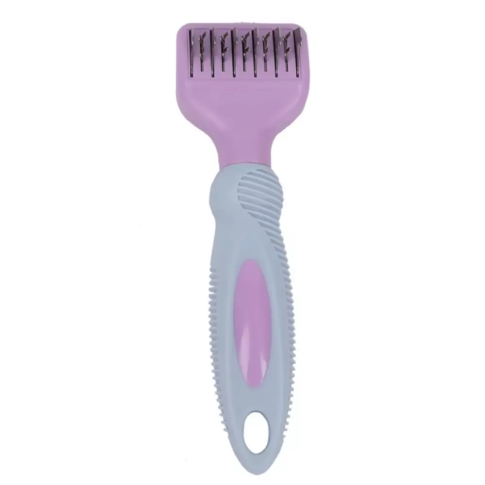 Made from high-quality stainless steel, the comb features precision-cut blades that gently work through mats and tangles without pulling or hurting your pet. The ergonomic handle gives you full control, allowing for safe, effective grooming that keeps your pet’s coat healthy and shiny. Available in three stylish colors — purple, pink, and gray — this tool is as charming as it is functional.