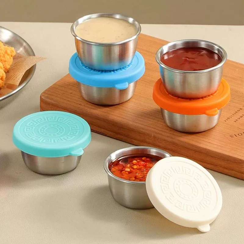 6pcs Stainless Steel Sauce Cups with Leak-proof Silicone Lids – Dipping & Storage Set