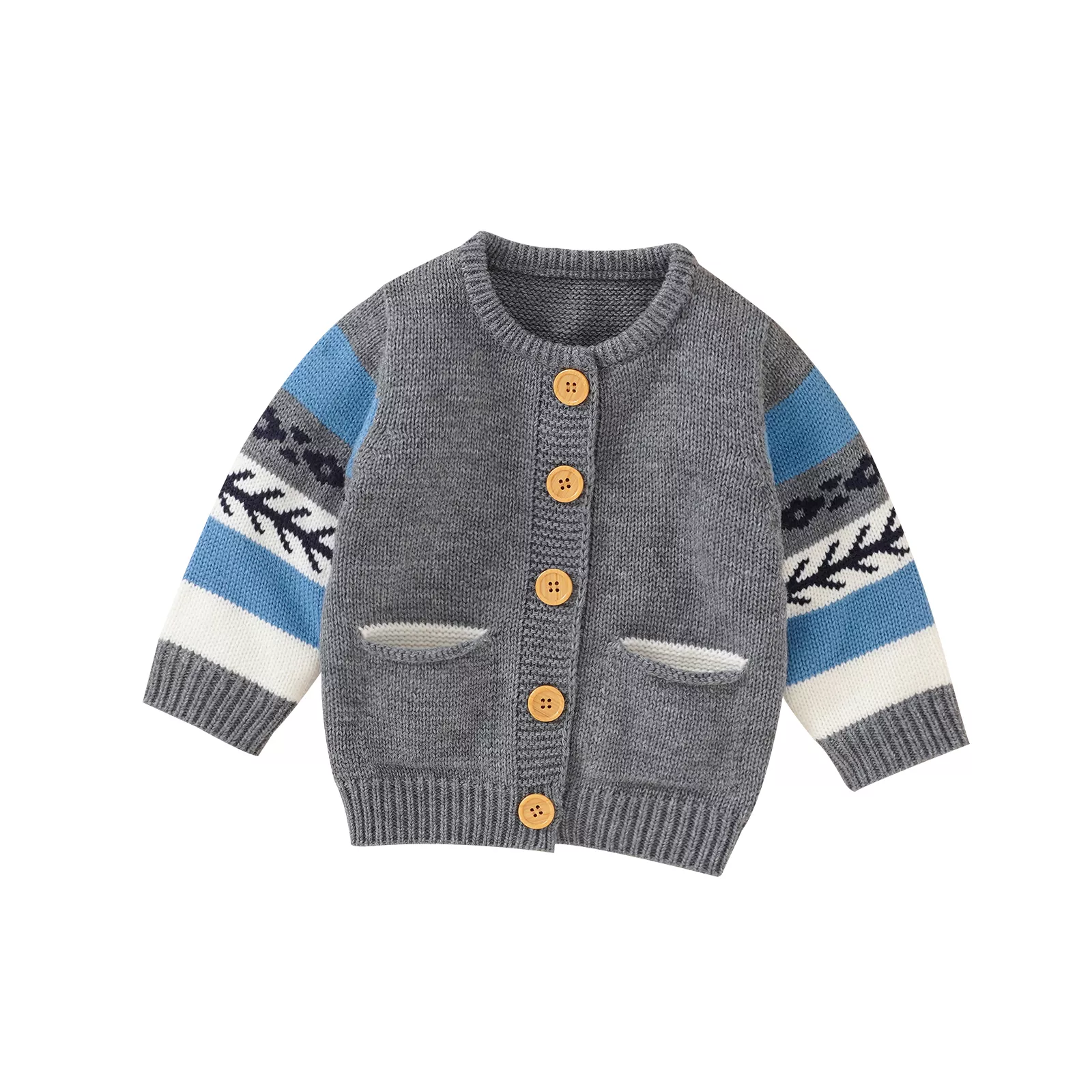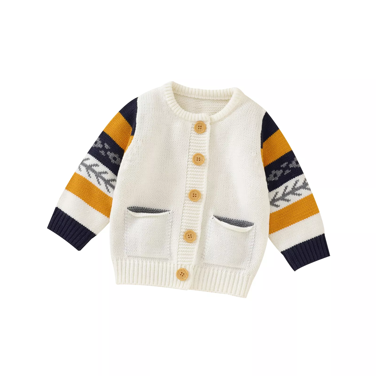 Made from soft, breathable acrylic fabric, the sweater feels gentle on sensitive skin while offering just the right amount of stretch for a perfect fit. The classic striped pattern adds a touch of timeless charm, making it suitable for both boys and girls. With a simple O-neck collar and easy single-breasted button closure, dressing your baby has never been so effortless—or so cute.