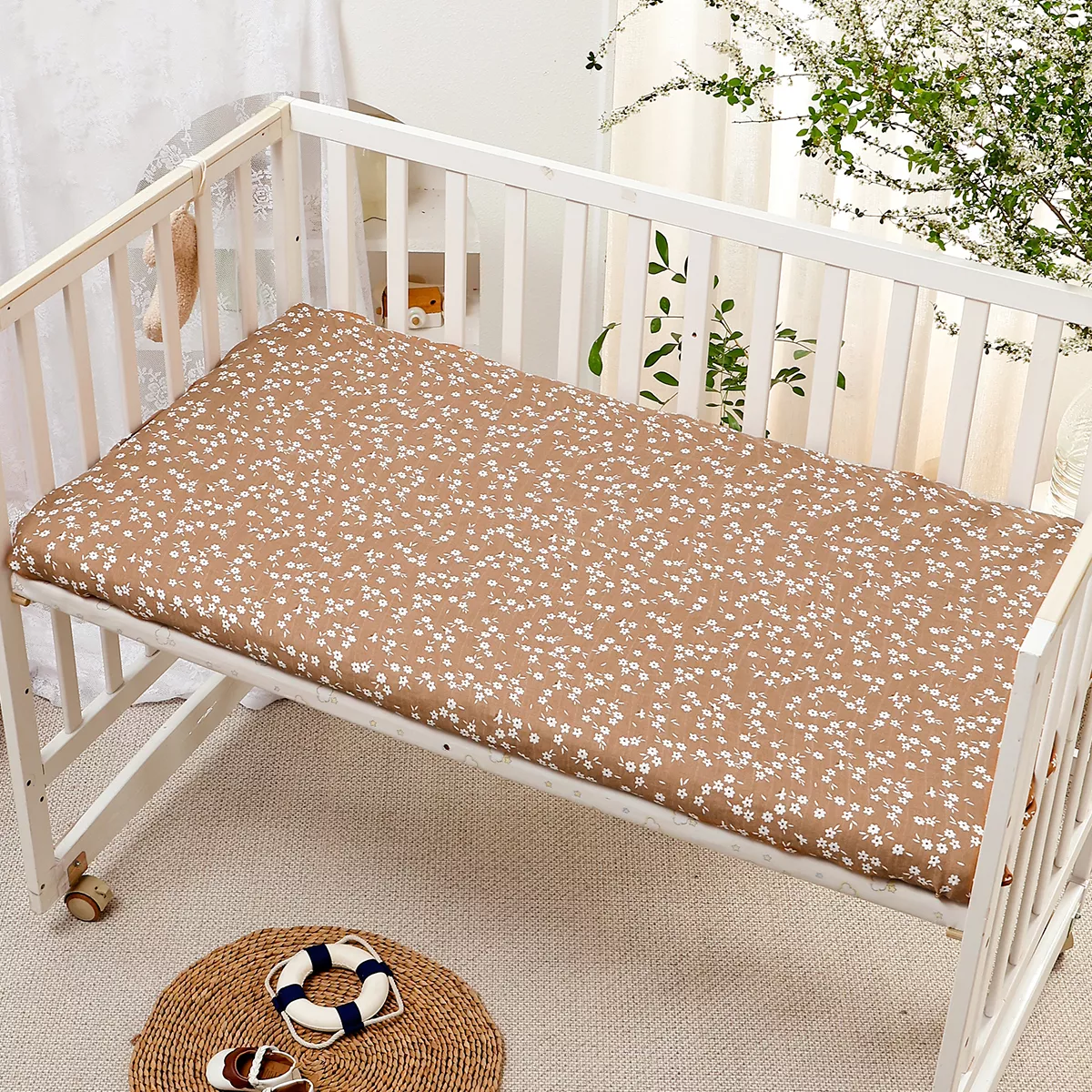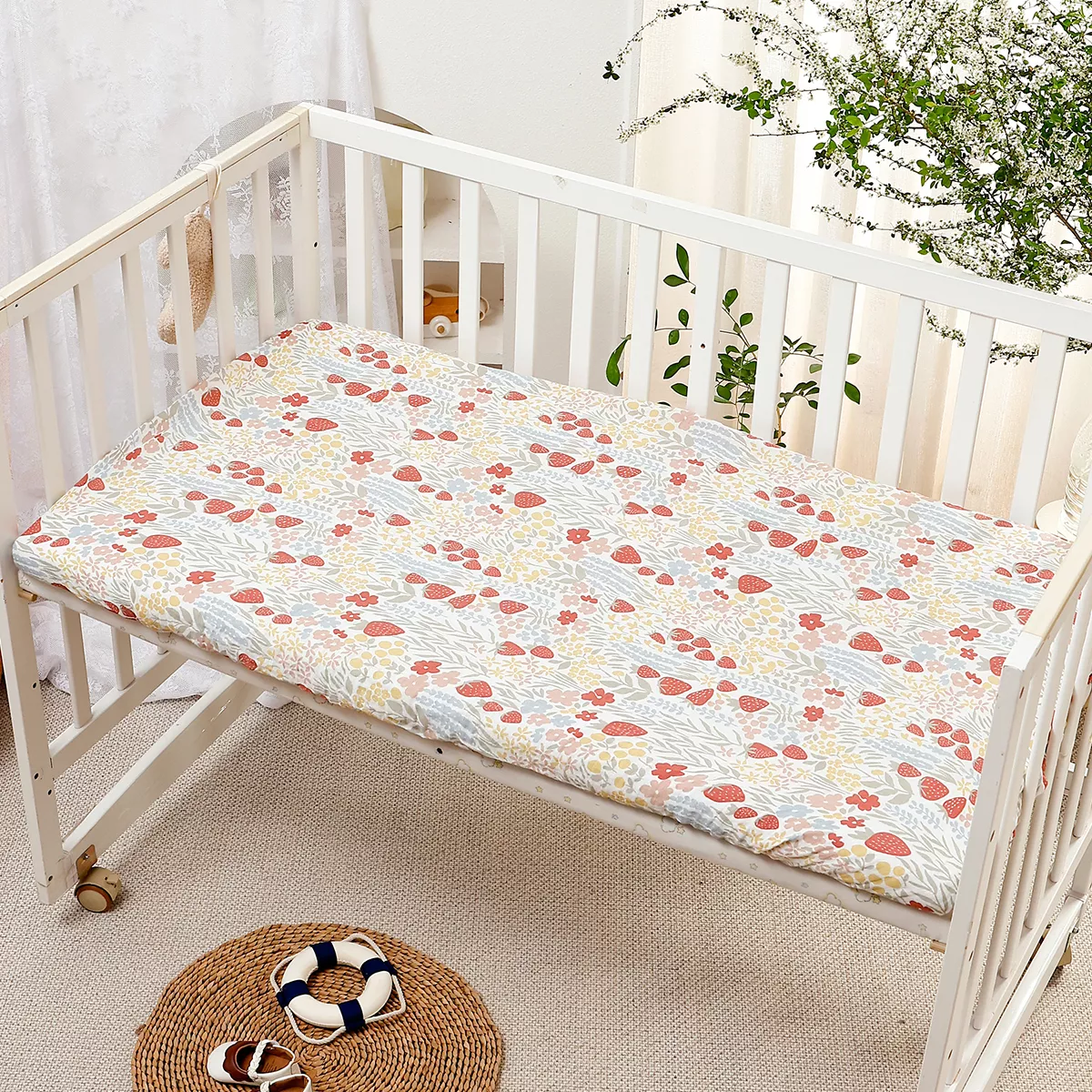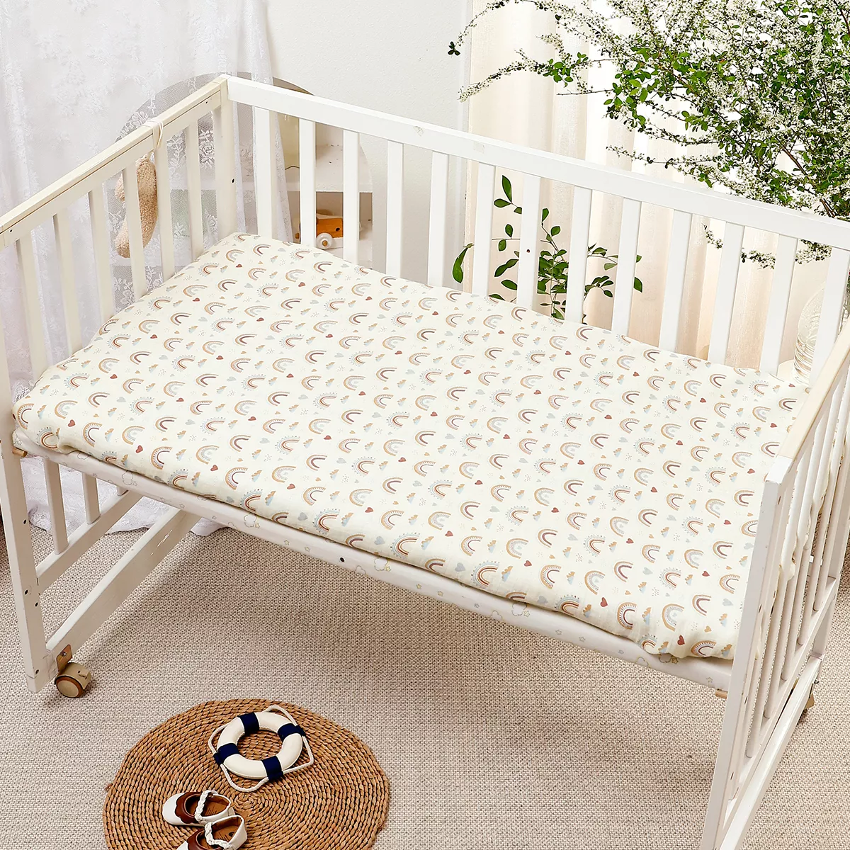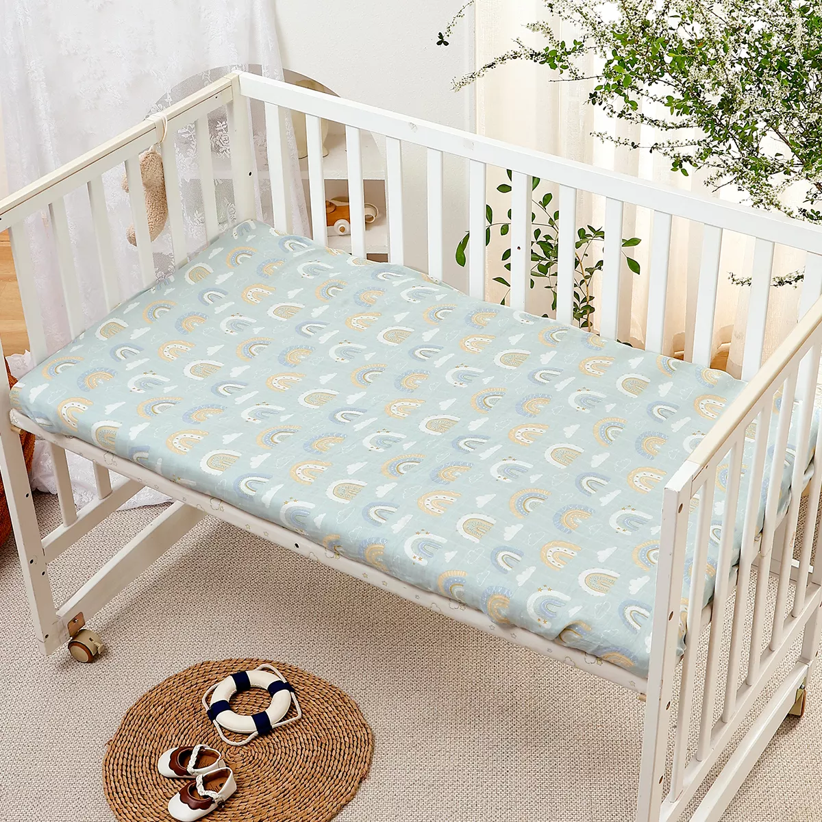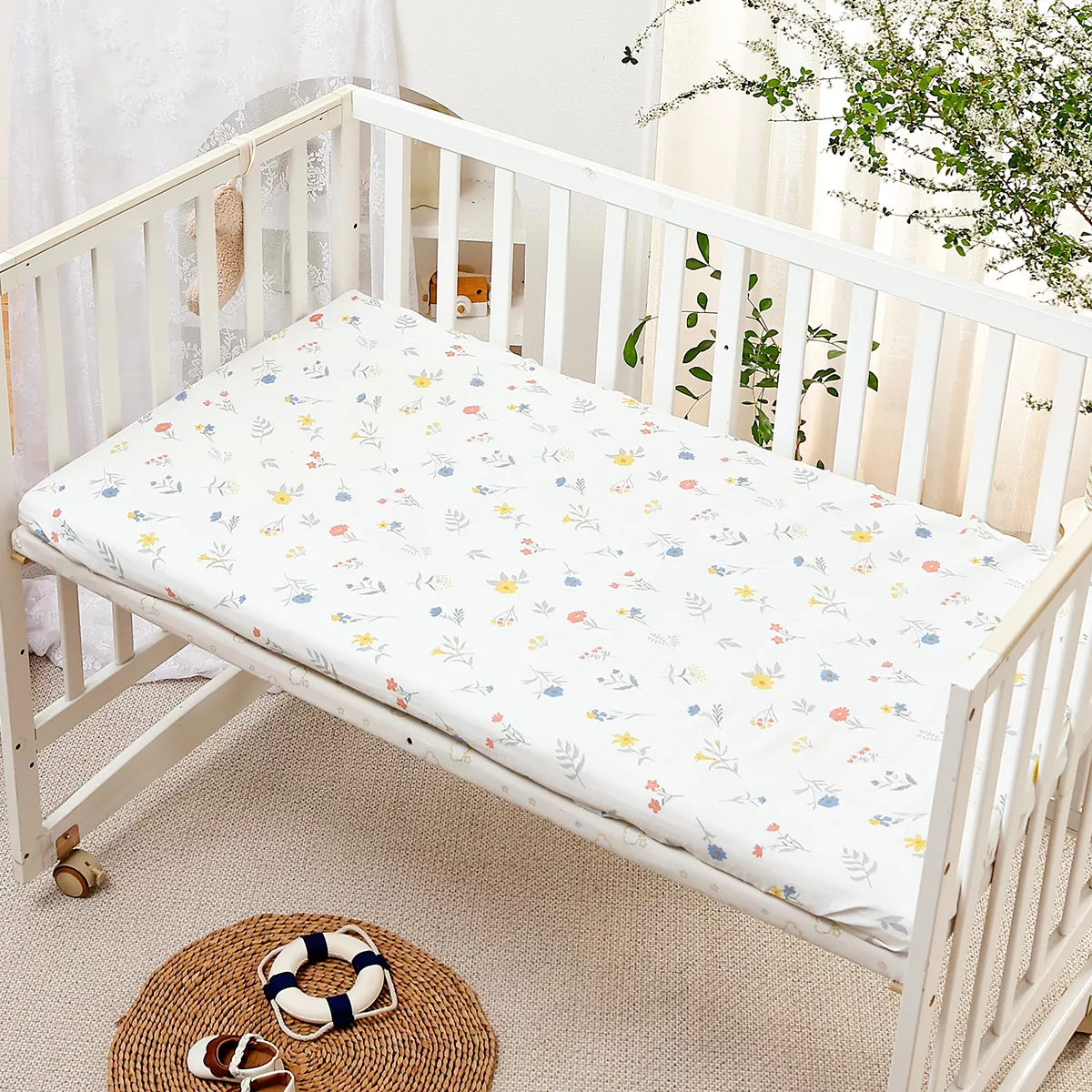 Life with a baby can get messy, so we made sure this crib sheet is machine washable for effortless cleaning. Simply toss it in the wash on a gentle cycle and tumble dry on low or line dry. The fabric is naturally resistant to creasing, keeping it smooth and fresh-looking after every wash.