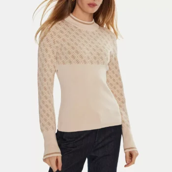 Guess Women’s Low-Cut V-Neck White Knitwear