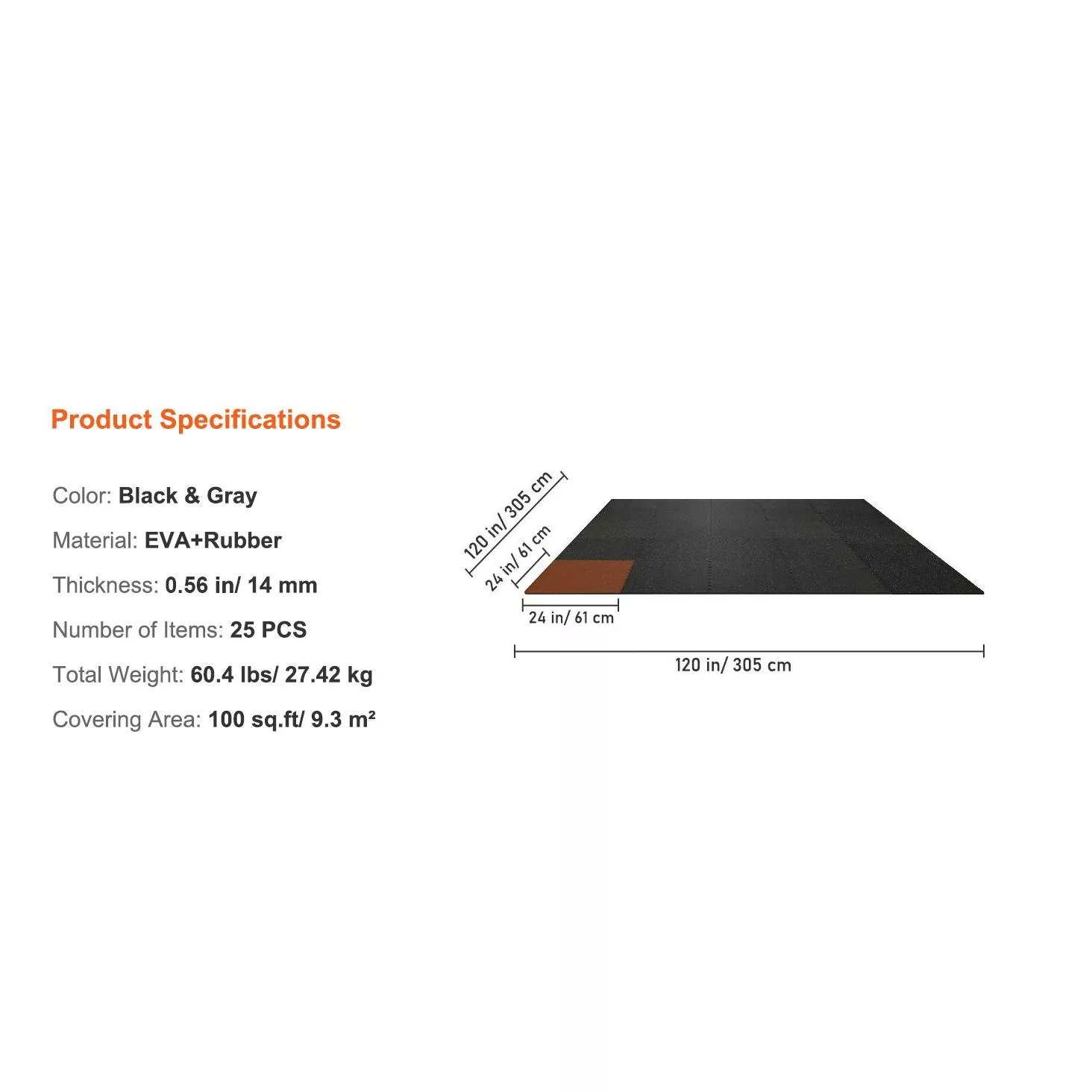 Each set contains 25 pieces, each measuring 24 x 24 inches, for a total coverage of 100 square feet. The thick cushioning helps absorb shock, reduce noise, and protect floors from scratches or damage caused by heavy equipment. The textured, non-slip surface ensures stability and grip, so you can move confidently during intense workouts. Suitable for use on wood, concrete, marble, carpet, and more, these mats stay in place without sliding or curling at the edges.