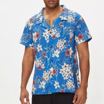 Boss Men’s Light Blue Floral Short Sleeve V-Neck Shirt