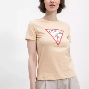 Guess Women’s Beige Rhinestone T-Shirt – Chic and Comfortable