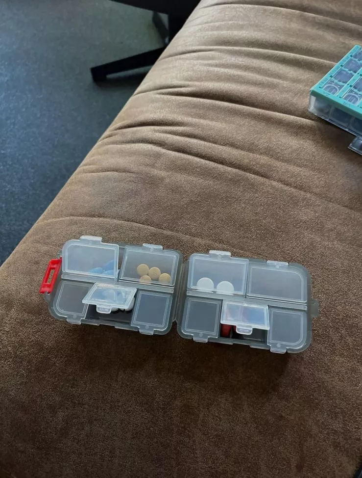 Unfortunately, the open sections can't accommodate my last vitamin, and it's frustrating that they're not all the same size.