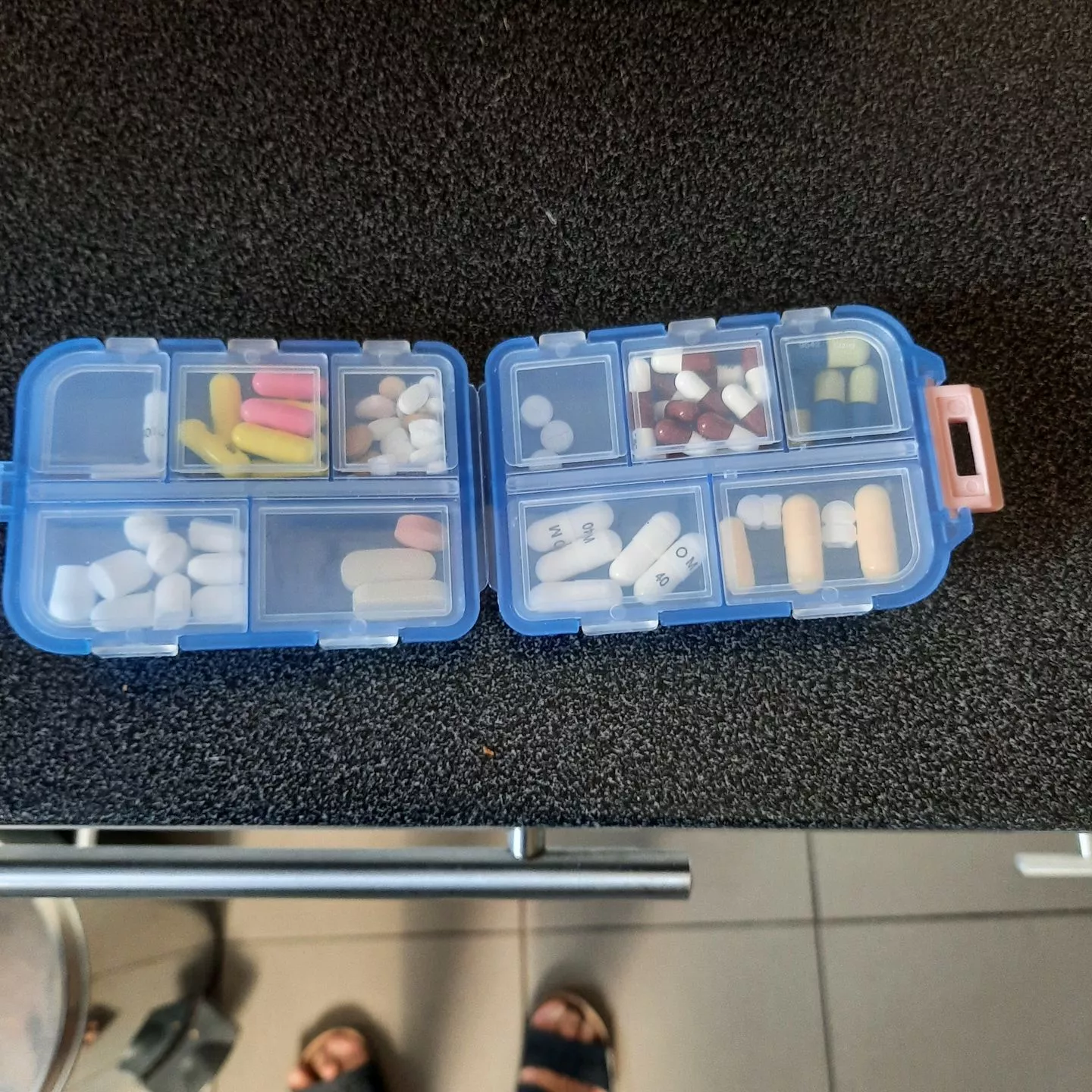 i recently got this travel pill organizer and couldn’t be happier. it's compact and fits perfectly in my travel bag without taking up much space. the individual compartments are spacious enough to hold a week’s worth of my medications, and the lids close securely, so i never worry about spills. the clear labeling helps me keep track of my daily doses, which is a lifesaver when traveling. it’s also very easy to open and close each compartment, even with my arthritis. cleaning the organizer is a breeze, and it feels very sturdy and durable. i've used it on several trips now, and it’s been incredibly convenient. it’s made organizing my medications so much simpler, and i never forget to take my pills. the design is sleek and practical, making it a great addition to my travel essentials. highly recommend this travel pill organizer to anyone looking for a reliable and practical solution for managing their medications on the go.