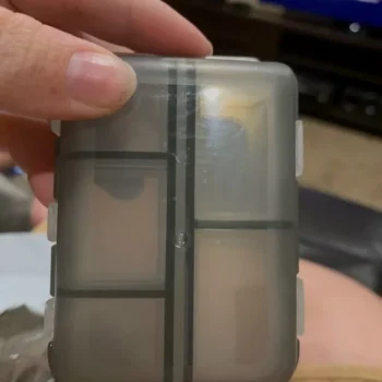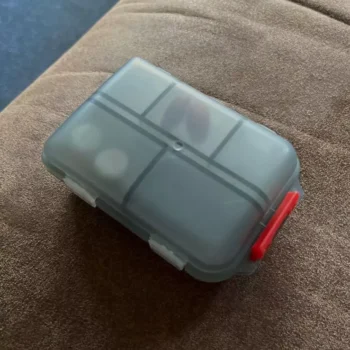 This travel pill organizer is a must-have for anyone who needs to keep their medications organized while on the go. It’s compact enough to fit in my purse, yet the compartments are spacious enough to hold all my daily pills. The lids snap shut securely, so I don’t have to worry about any spills or messes. The clear labeling on each compartment makes it easy to keep track of my medication schedule, which is especially helpful when traveling. The organizer is also easy to clean and feels very durable. I’ve taken it on several trips, and it’s been a lifesaver for keeping my medications organized and accessible. I also appreciate how easy it is to open and close each compartment, even with my arthritis. Overall, this pill organizer has made managing my medications so much simpler and stress-free. I highly recommend it to anyone who travels frequently and needs a reliable way to keep their pills organized.