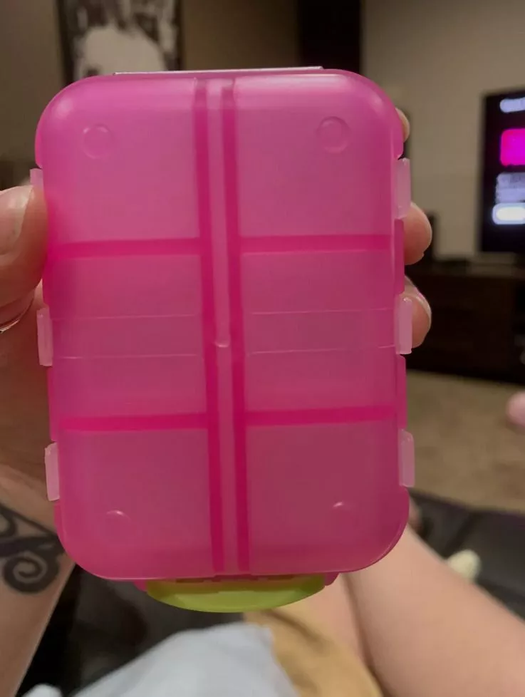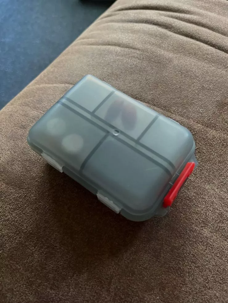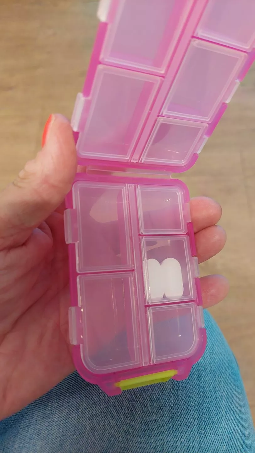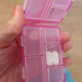 I adore this versatile pill box. Its numerous compartments make it suitable for more than just pills, and its size is just right—not too large to fit comfortably in a purse. I carry mine with me constantly. In addition to holding pills, it serves as a handy storage spot for small items like buttons, ensuring they won't get lost. The flexibility of the compartments allows you to store whatever you need, making it perfect for coordinating with different color schemes or organizing various items.
