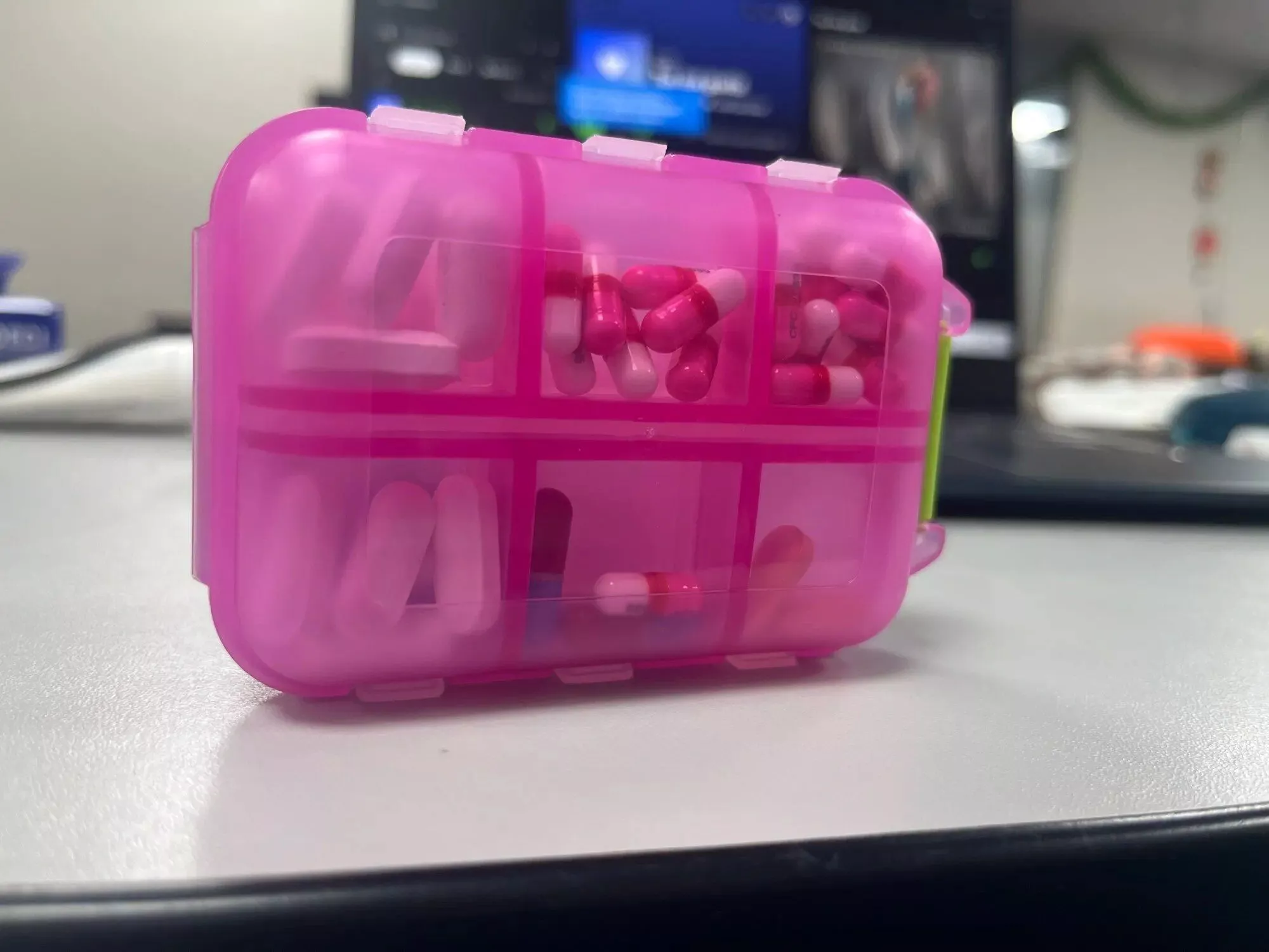 It's very portable and helps me keep my different pills where I need them, so I don't have to go looking for the bottle when I need a pill.