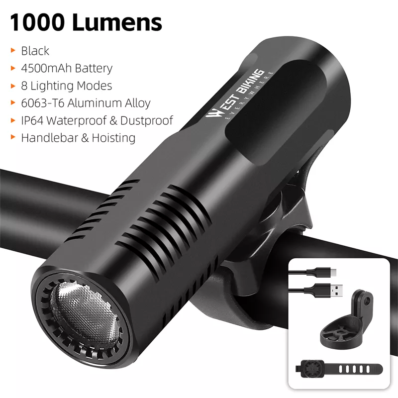 • Multiple Brightness Options: Choose from 400, 800, or 1000 lumens to match your ride and visibility needs