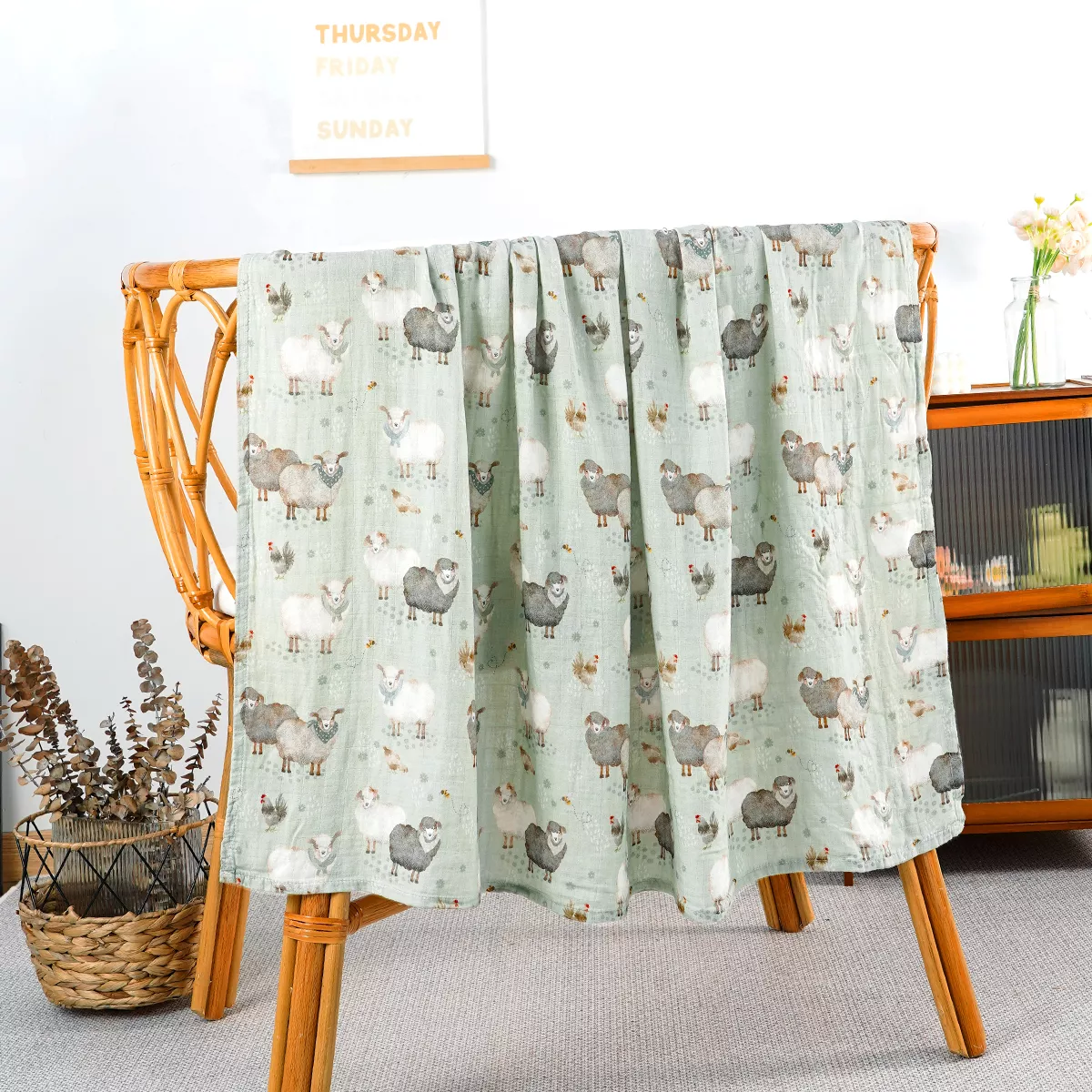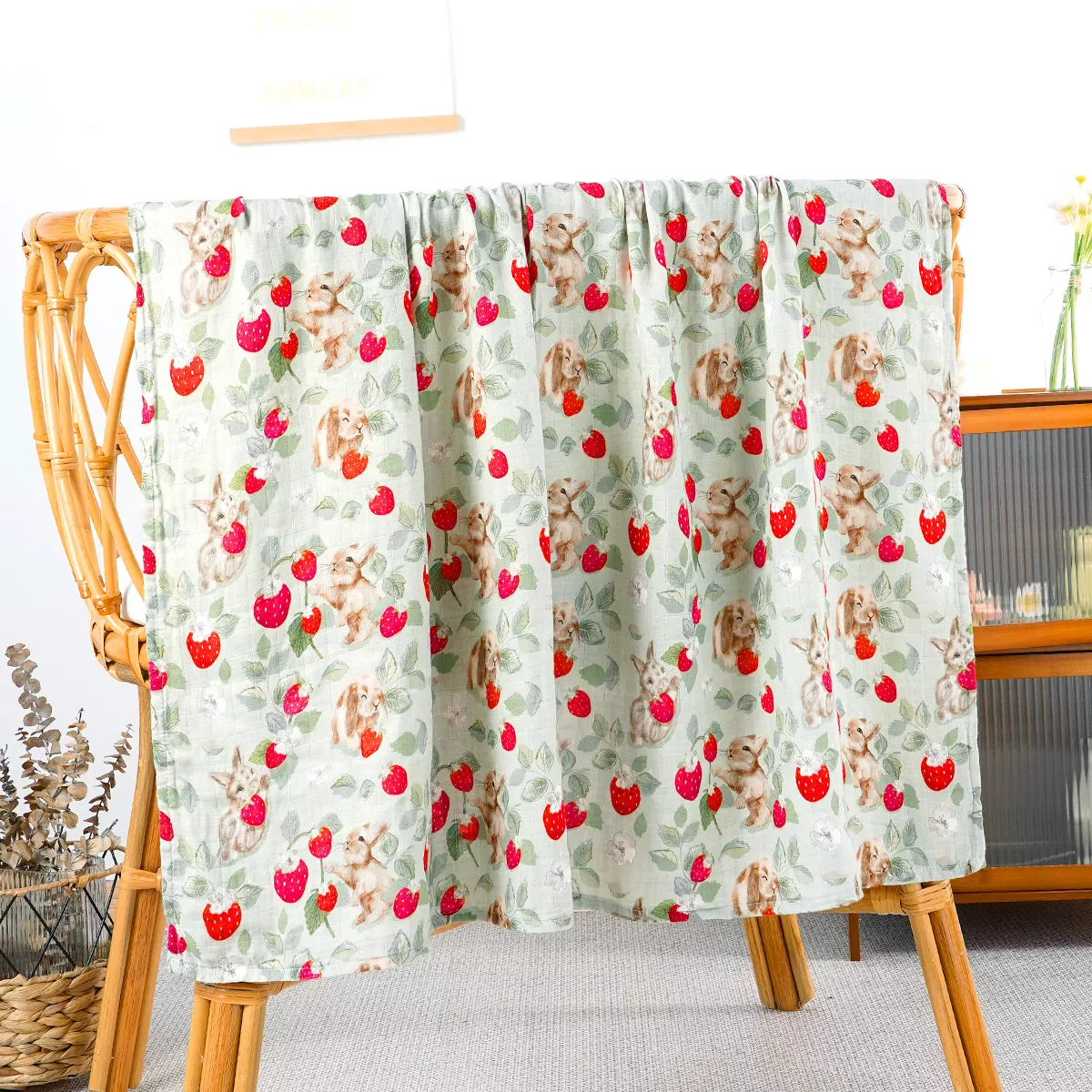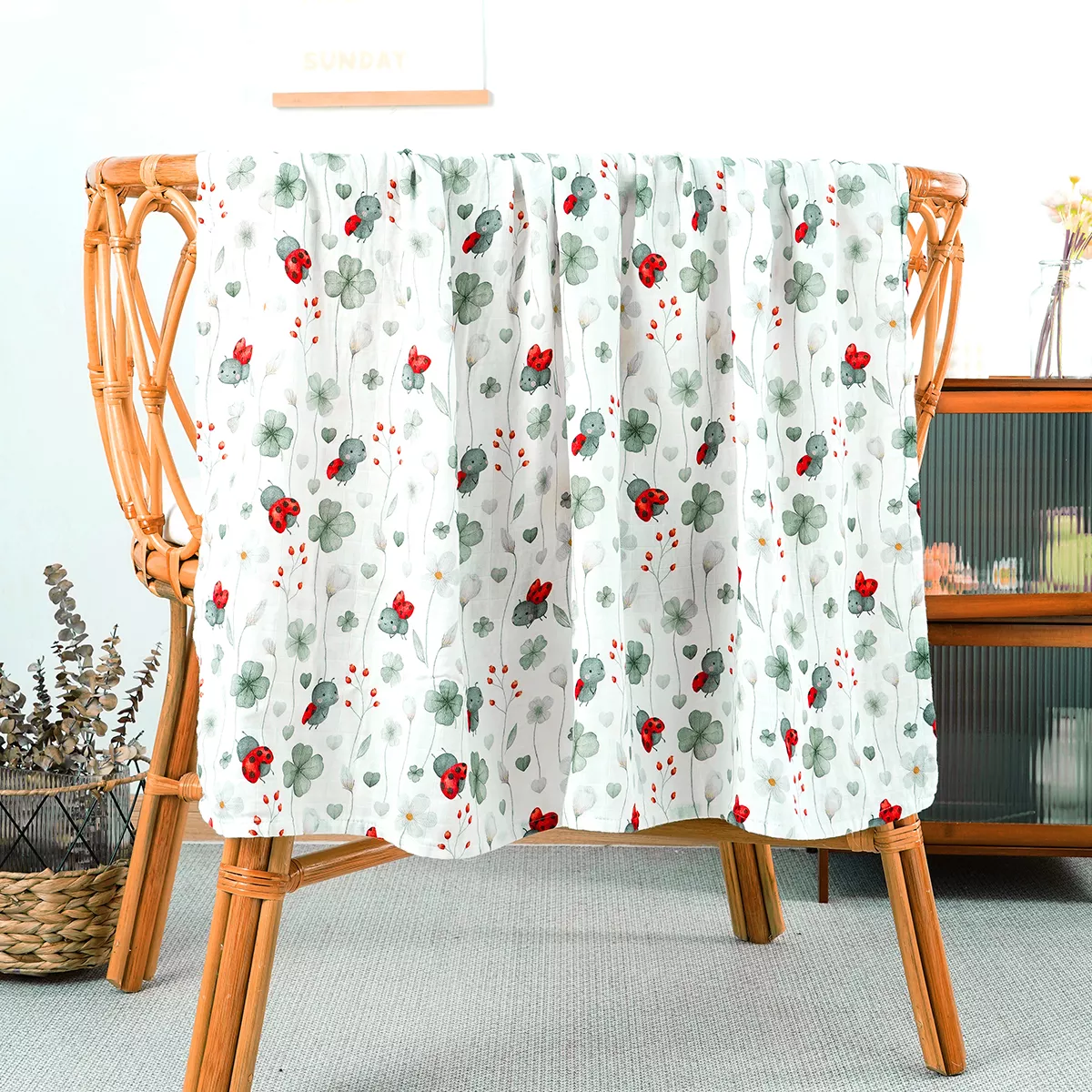 Made from a rich mix of bamboo fiber and cotton, this muslin swaddle is lightweight, durable, and naturally breathable. The generous size of 47 x 43 inches gives you plenty of room for swaddling, making it ideal for babies from birth to 12 months. The charming printed patterns add a stylish touch while keeping your baby cozy and content.