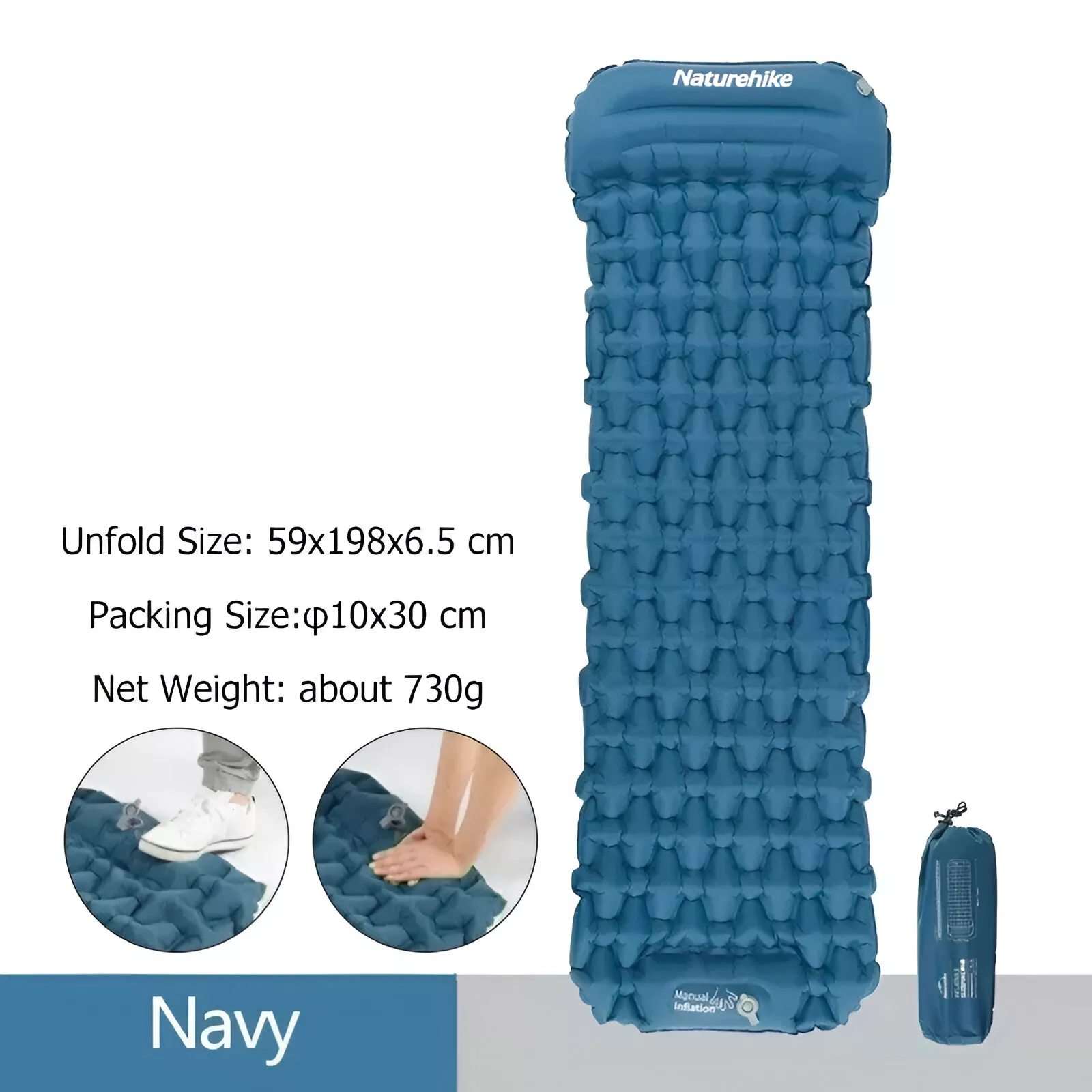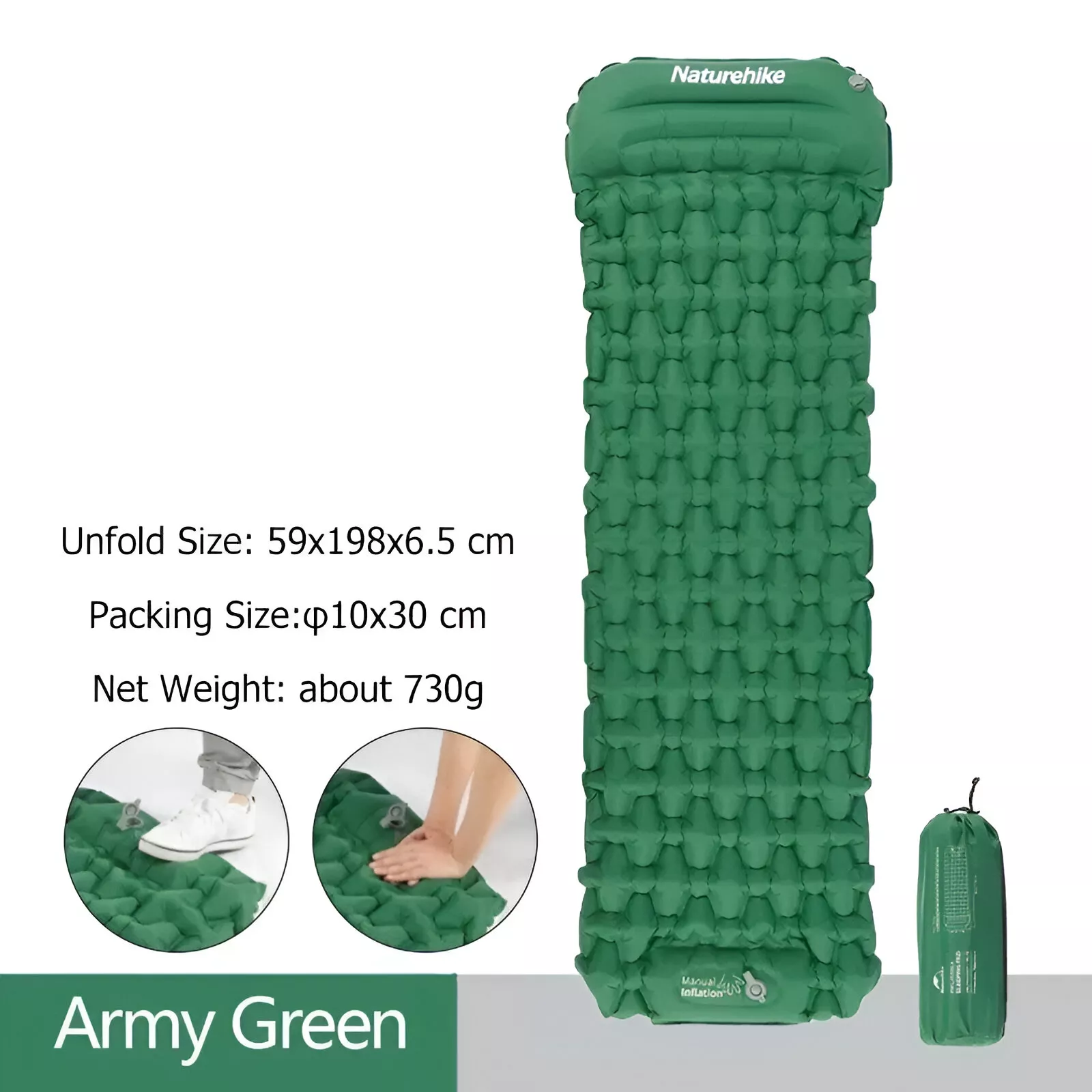 This inflatable mattress is crafted from high-quality 40D nylon with a TPU coating, making it tough, waterproof, and resistant to tears. It measures 78 x 23.2 x 2.6 inches when fully inflated, providing ample space for a good night’s rest. Despite its generous size, it weighs only 1.6 lbs and packs down to a compact 11.8 x 4.3 inches, making it easy to carry in your backpack. The built-in inflator pump allows for quick inflation by simply pressing, so you won’t need to bring a separate pump. With a thickness of about 2.6 inches, it offers excellent cushioning from hard ground while staying lightweight and portable.