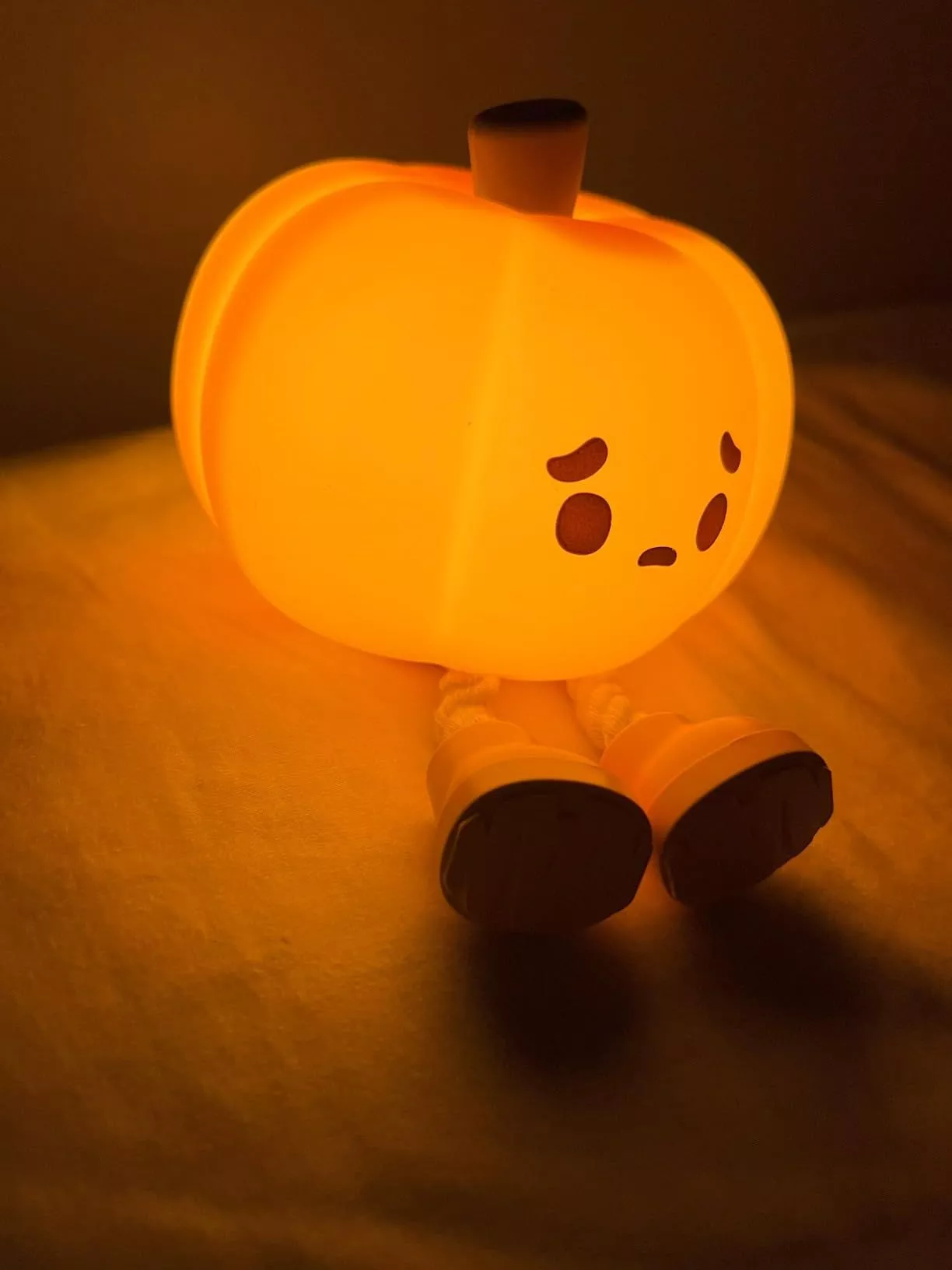 This pumpkin nightlight is soft, squishy, and absolutely adorable!