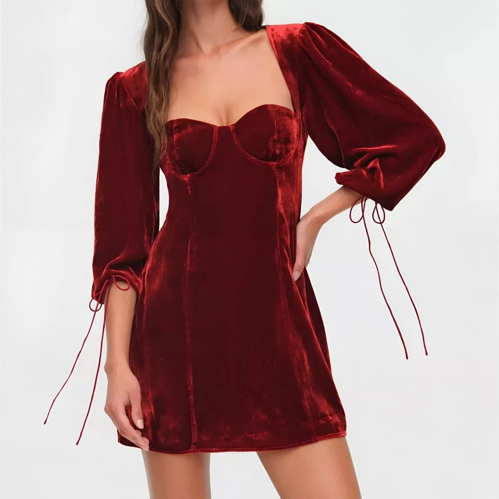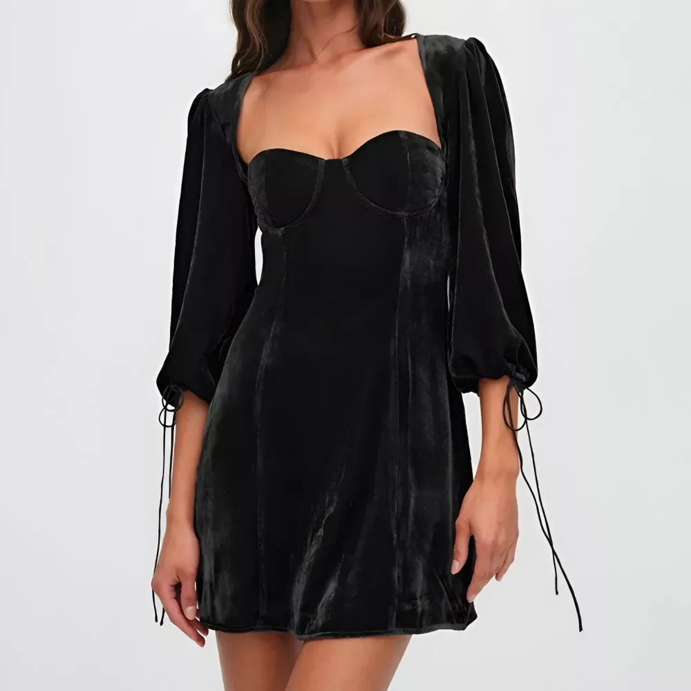 Velvet Backless Mini Dress with Square Collar for Women – Elegant Club Party Dress