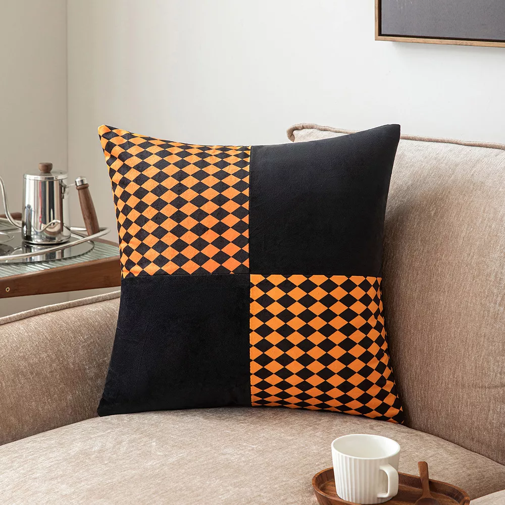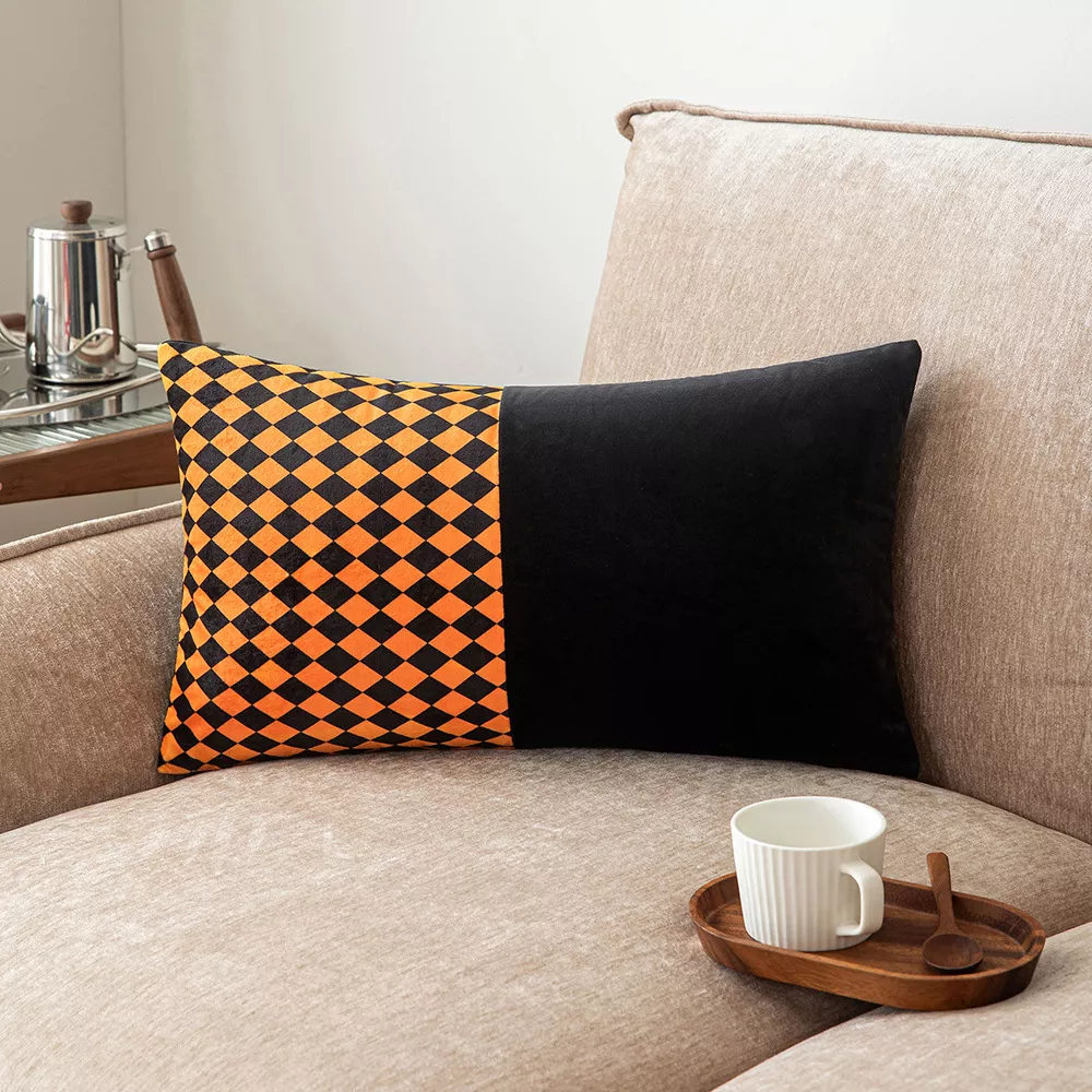Velvet Patchwork Plaid Throw Pillow Covers for Sofa & Bed – 12x20in / 18x18in