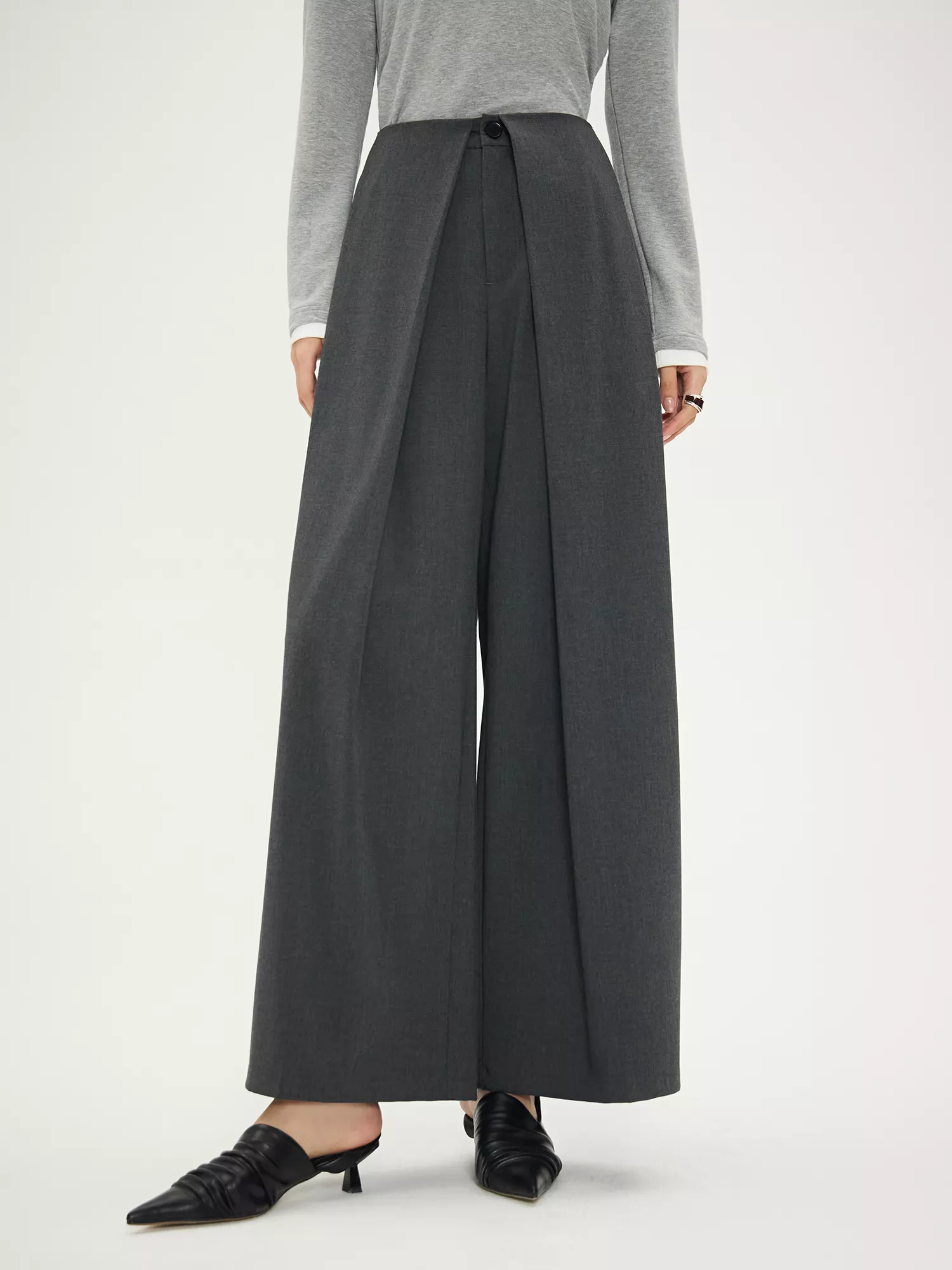 Versatile Pleated Gray Wide-Leg Suit Pants – Casual High-Waist Trousers