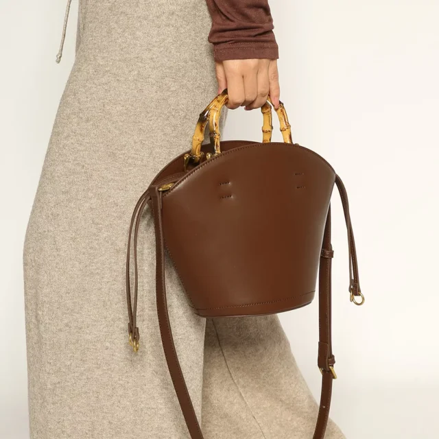 From a day at the office to a weekend brunch, this vintage bucket bag is designed to be your go-to accessory. The stylish bamboo handle and soft leather exterior make it suitable for both formal and casual settings, while the functional interior keeps your essentials organized. Its unique charm and understated elegance will surely turn heads wherever you go.
