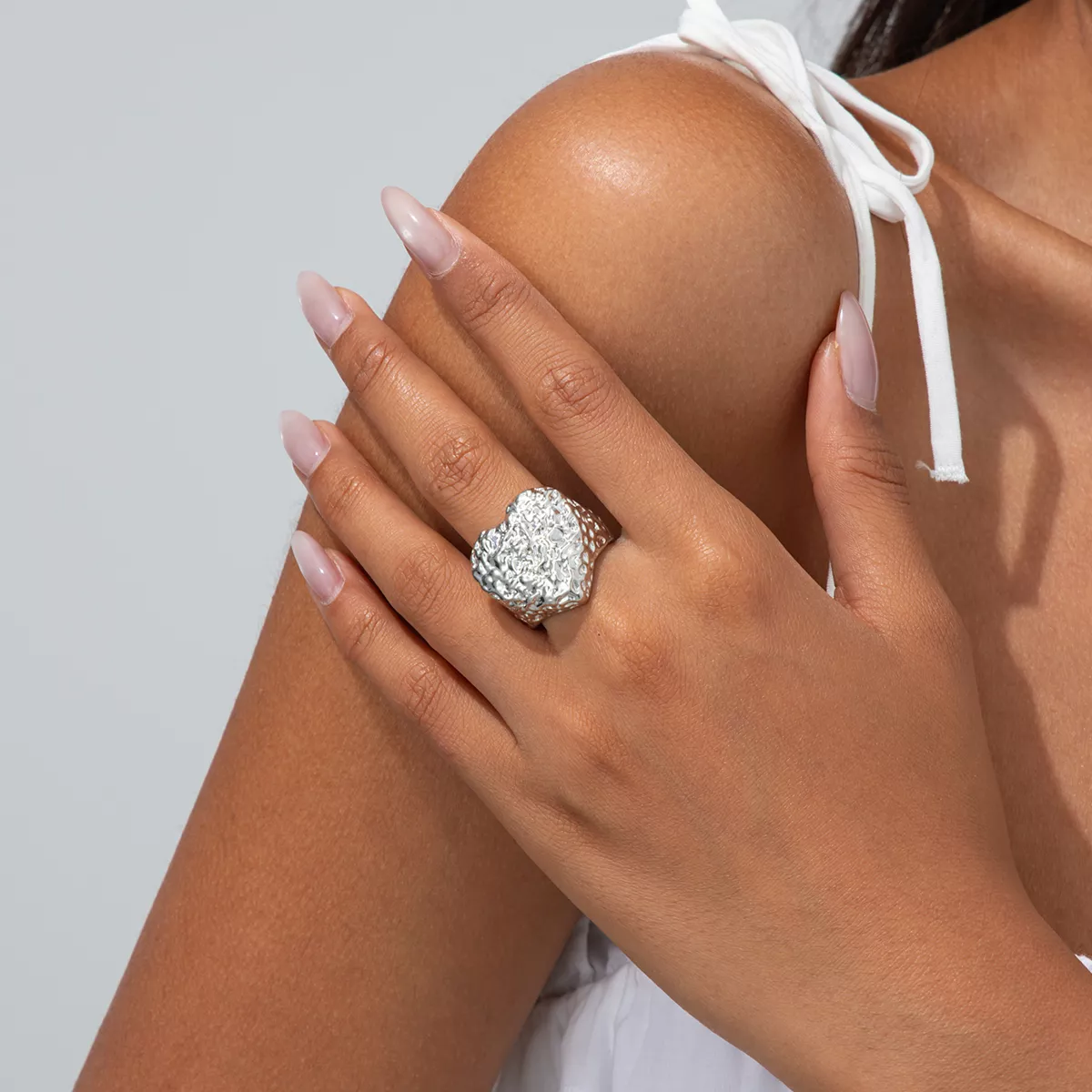 I want to share my thoughts on this chunky heart ring. When I first saw it, I was really impressed by the detailed craftsmanship. You can tell a lot of care went into making it—every small feature feels thoughtfully designed and carefully finished. It’s the kind of piece that makes you appreciate the work behind it. The style has a vintage feel, a bit like something you might find in your grandmother’s collection, but at the same time, there’s a modern touch that keeps it fresh. The mix of classic charm with contemporary design gives it a unique look that stands out in a subtle way. It’s different from anything else I own. What I appreciate most is how versatile it is. Whether I’m dressing up for a formal event or just going out for a casual brunch, this ring fits right in and adds something special to my outfit. It really works for a variety of occasions without feeling out of place. Honestly, it’s become one of my favorite pieces of jewelry—not just because it’s beautiful, but because it fits so naturally with so many different styles. If someone asked me whether they should get one, I wouldn’t hesitate to recommend it. It’s a distinctive piece that’s easy to wear and easy to love