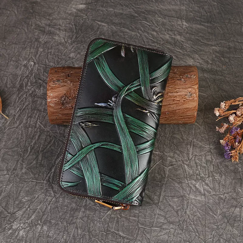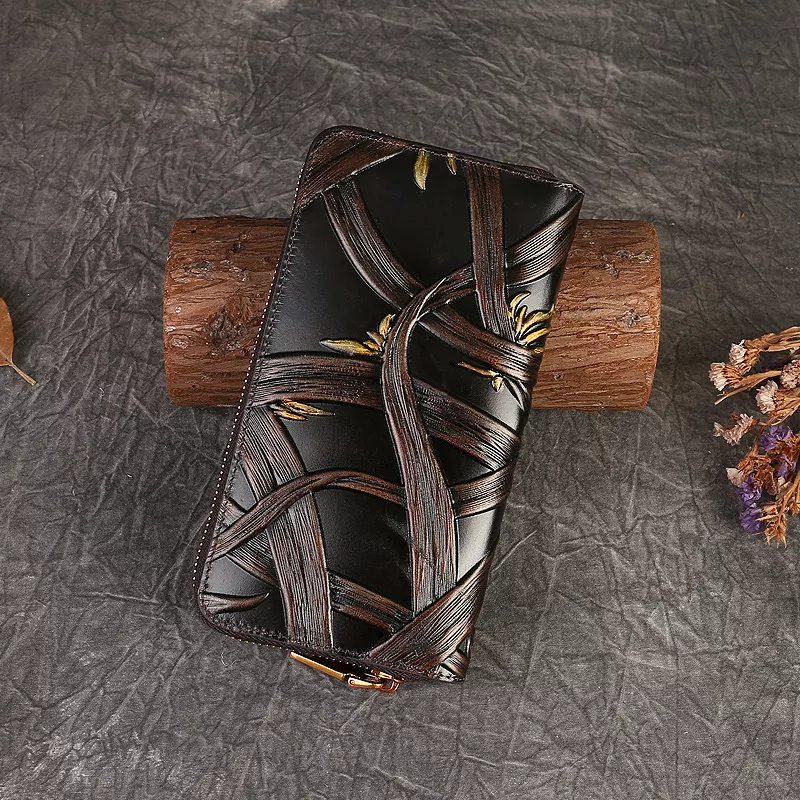 Vintage Handmade Embossed Genuine Leather Long Wallet for Women