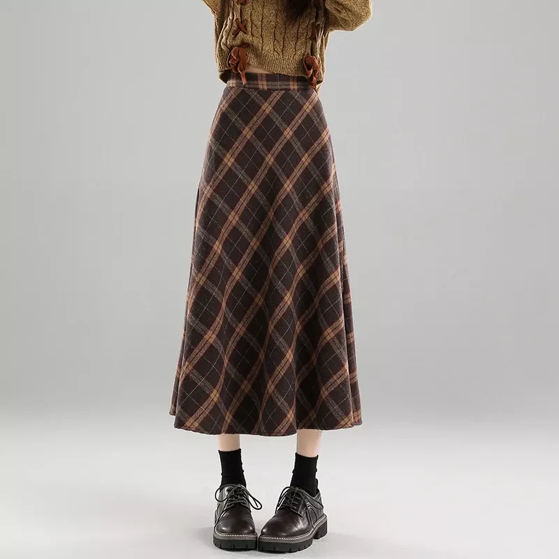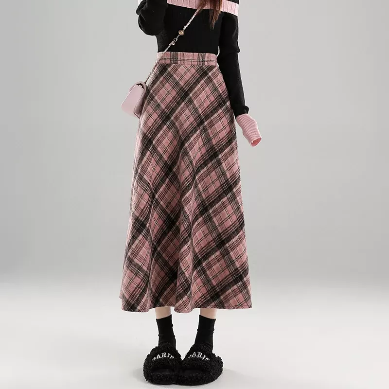 Vintage Pink Plaid High Waist A-Line Skirt for Women – Mid-Length Preppy Style
