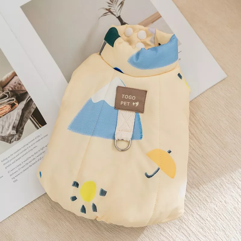 Your dog deserves to stay warm without compromising on style. This warm cotton-padded dog vest is the perfect blend of comfort, charm, and practicality. Designed with a playful illustrated print and a cozy down-like fill, it keeps your pup snug on chilly walks, outdoor adventures, or relaxing at home. With its thickened padding, this vest is made to shield your furry friend from cold winds and low temperatures while adding a splash of personality to their look.