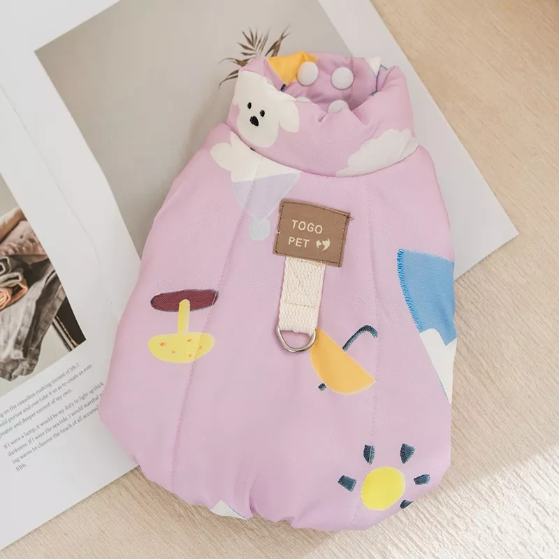 Warm Cotton Padded Dog Vest with Cute Illustration Print