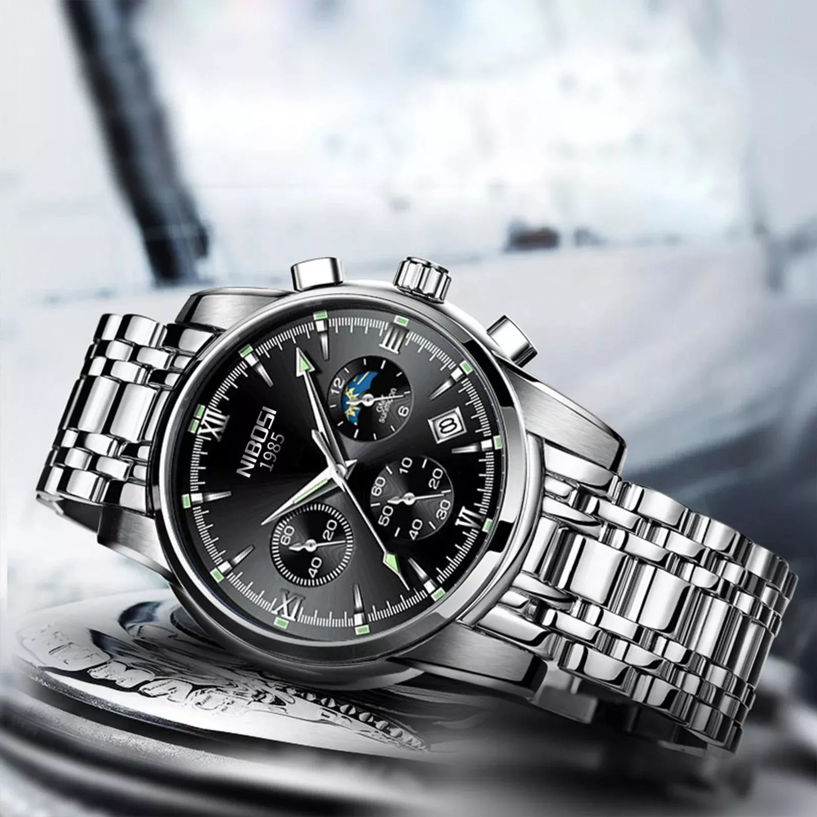 Men’s Luxury Moon Phase Chronograph Sport Watch with Date & Waterproof Design