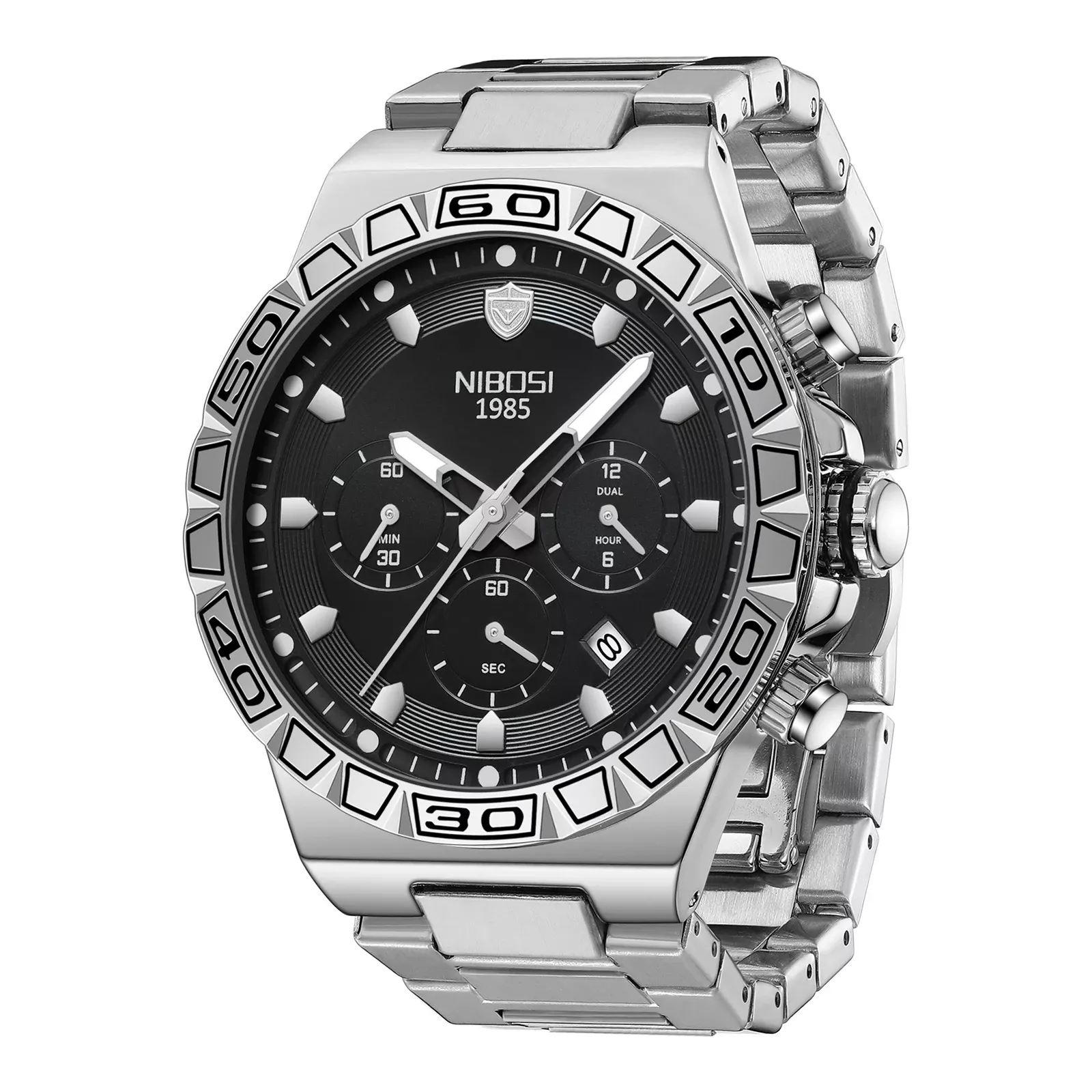 Waterproof Men’s Chronograph Watch with Luminous Hands and Stainless Steel Band