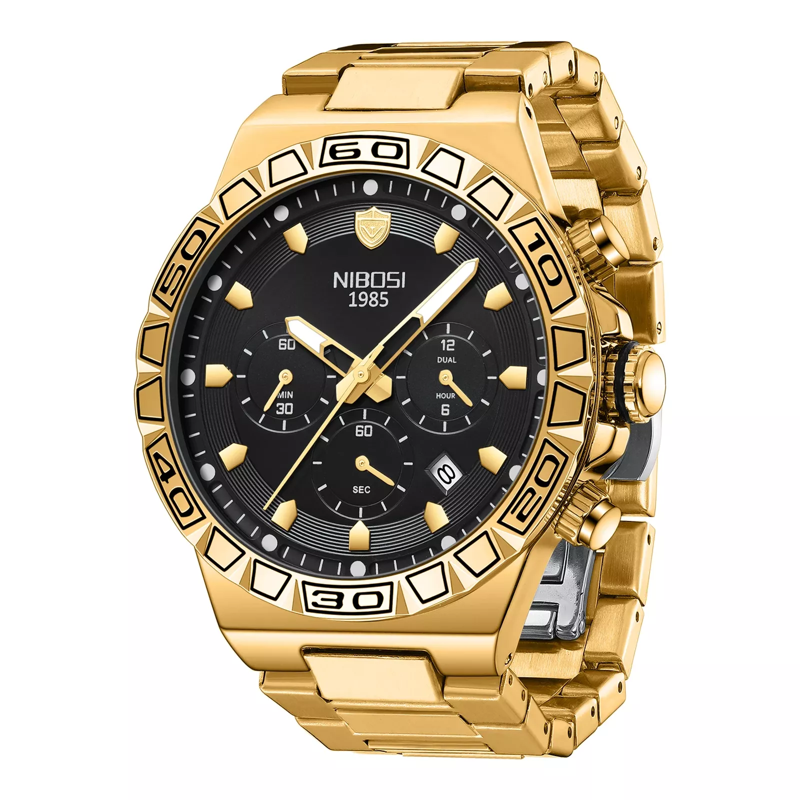 This watch is packed with features that make it much more than just a timekeeper. It includes a precise quartz movement for accurate timekeeping, a chronograph for stopwatch functions, and a full calendar with automatic date adjustment. The watch is shock resistant and anti-magnetic, built to withstand tough conditions without losing performance. Plus, the luminous display and hands make it easy to see the time in darkness, while the push-button hidden clasp offers a secure and comfortable fit.
