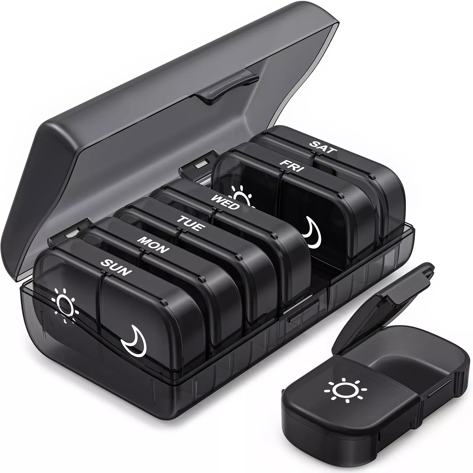 Unlike many standard pill boxes, this one offers extra-large openings on one side of each lid, allowing easy access even for those with limited hand mobility. The all-black design adds a layer of privacy, hiding your medication from prying eyes, while the AM/PM system prevents missed or double doses. Simple yet powerful, it’s a reliable companion for managing your routine safely and discreetly.