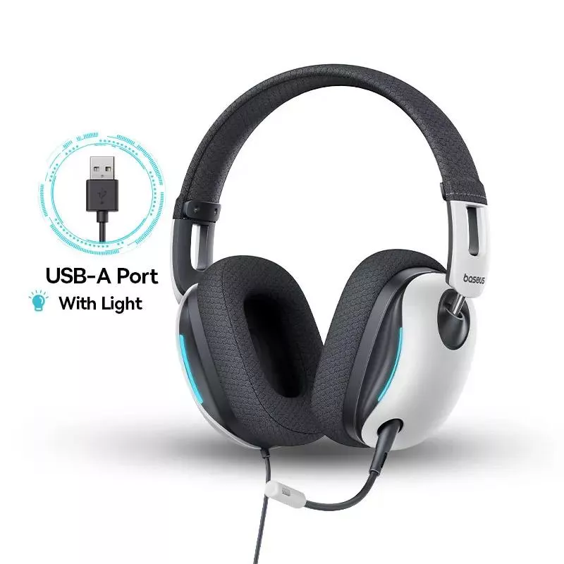 Available with both USB-A and 3.5mm plug options, this headset works seamlessly with Windows, macOS, PS4, PS5, Xbox, Switch, and most mobile devices. The future-tech aesthetic with color-block detailing and ice-blue ambient lighting adds a cool visual edge to your setup—perfect for players who like to stand out.