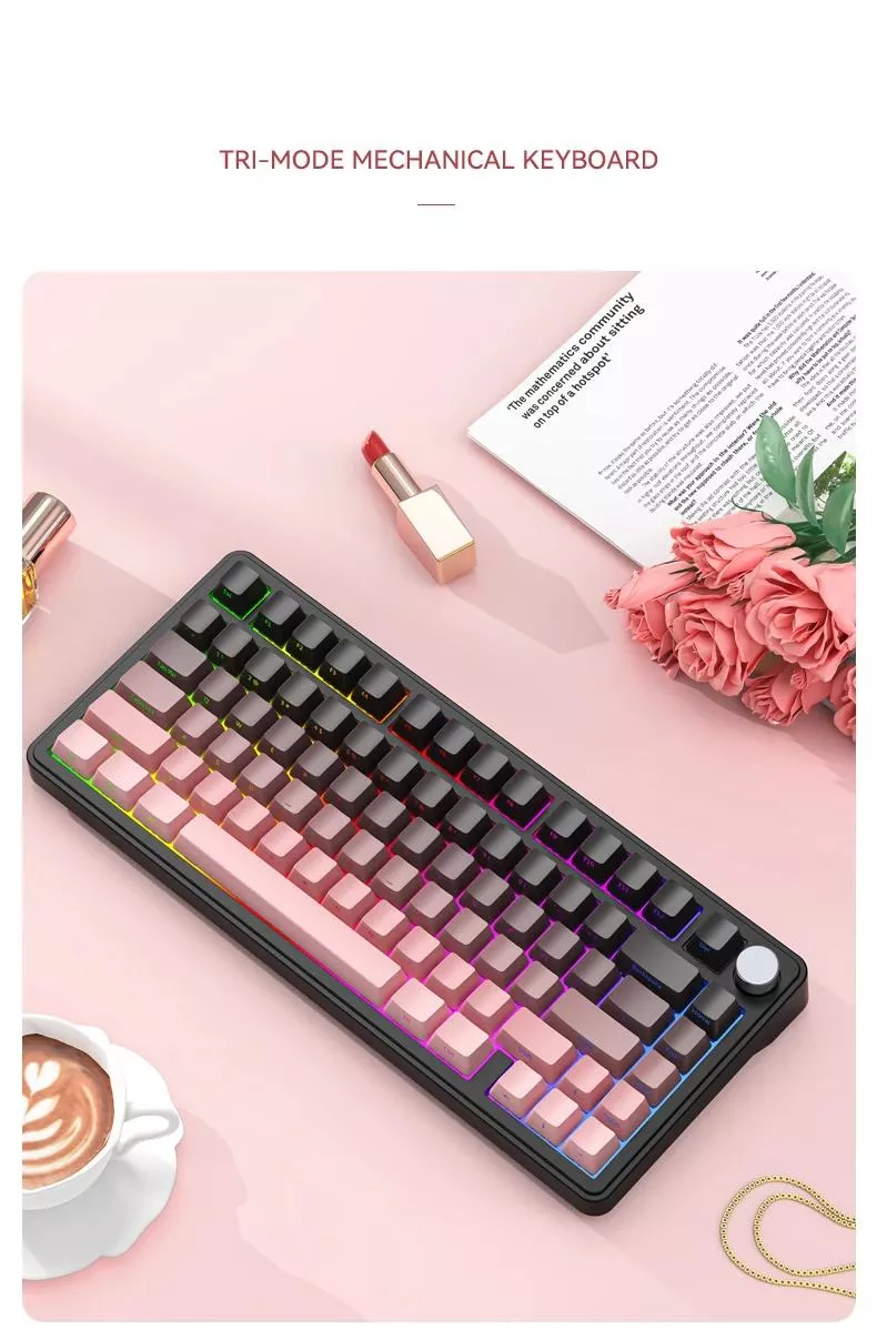 Take control of your gaming and workflow like never before with this high-performance wireless mechanical keyboard. Featuring a bold 82-key compact layout, dazzling RGB lighting, and advanced tri-mode connectivity, this keyboard is built for serious gamers, digital creatives, and tech lovers who demand both function and flair. Whether you’re in the heat of a competitive match or deep into a long work session, this keyboard adapts to every move — and looks incredible doing it.