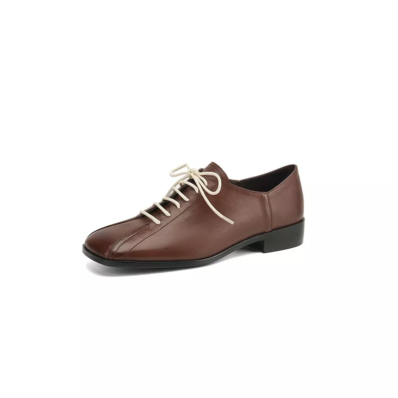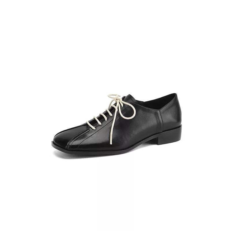 Women’s Genuine Leather Square Toe Lace-Up Loafers