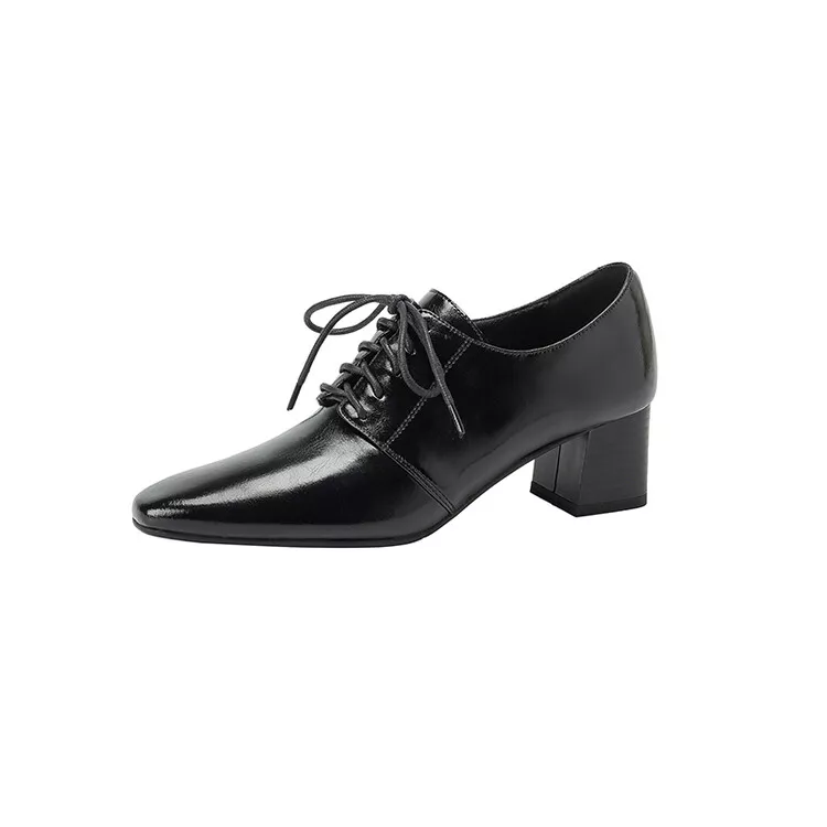 The combination of a chunky 2-inch (5 cm) square heel and a structured silhouette gives you a touch of height without sacrificing stability. The square toe adds a contemporary twist, while the spliced detailing adds texture and visual interest. From desk to dinner, these shoes blend versatility with craftsmanship, ensuring you always put your best foot forward.