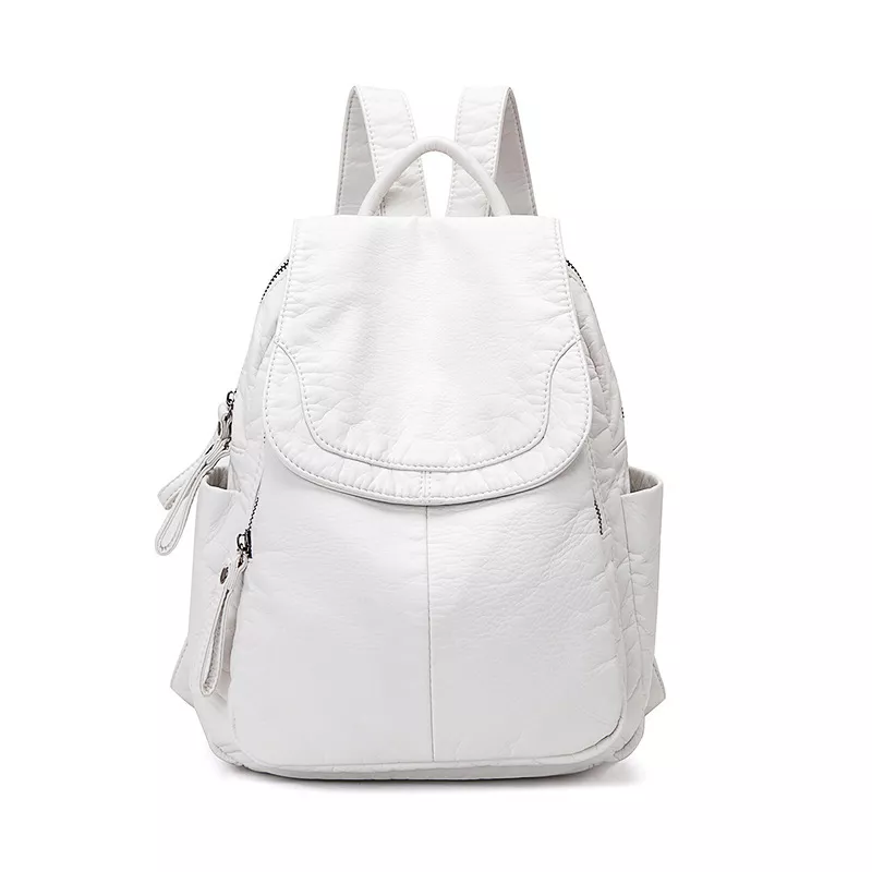 Meet your perfect go-to backpack — a stylish white washed leather look that’s as versatile as your busy lifestyle. This compact backpack blends casual charm with everyday functionality, making it ideal for school, travel, or a weekend out. With its soft finish and sleek design, it easily pairs with any outfit, giving you a fresh, on-trend look without trying too hard.
