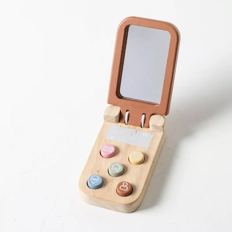 Wooden Montessori Baby Phone Toy with Mirror